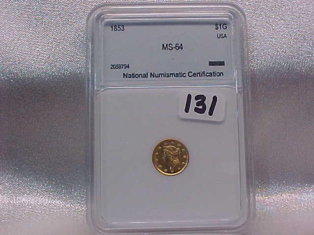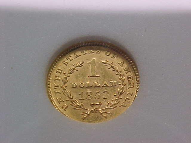 Gold $1 1853 NNC MS64 (Unc detail, nice luster)