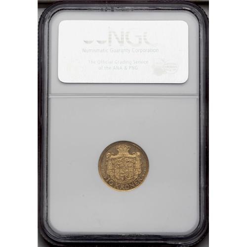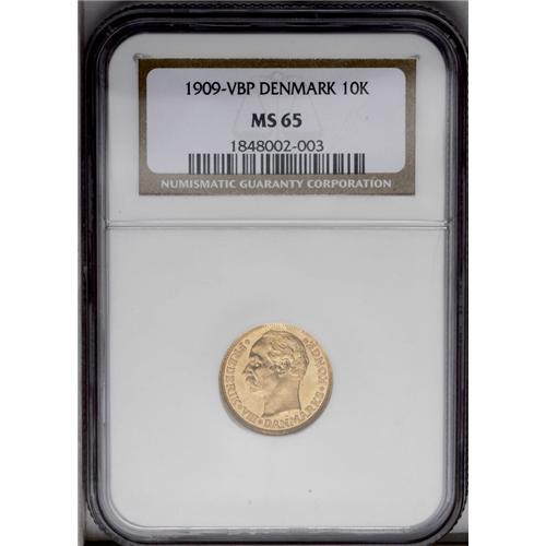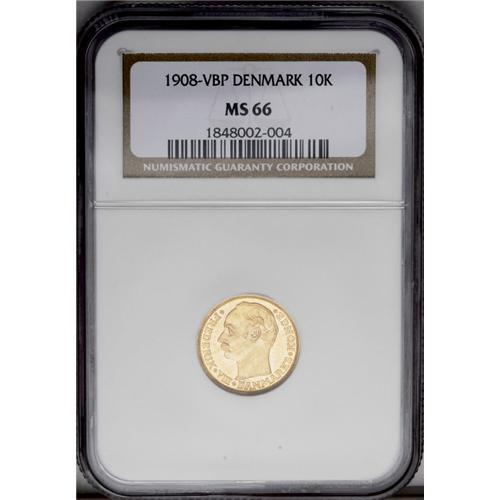 <B>Gold 10 Kroner pair including:</B></I> 1908VBP, MS66 NGC; and a 1909VBP, MS65 NGC, both are KM809.
