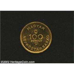 Gold 100 Forint 1961, KM564, 80th anniversary of the birth of Bartok, Proof. Important notice: We expect to be auctioning lots at the rate of 200-250 per hour. Sometimes eBay Premier live bid software cannot keep up with that pace, so we strongly recommend that you place a realistic proxy bid now as insurance to avoid disappointment. Also please note that all Heritage/CAA lots purchased through eBay Premier carry a 20% Buyer's Premium. Please make sure you read the Terms and Conditions.