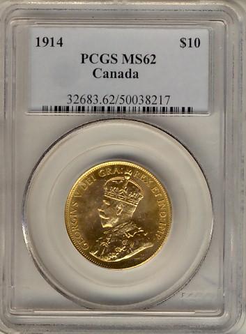 Gold 1914 $10 PCGS MS62.