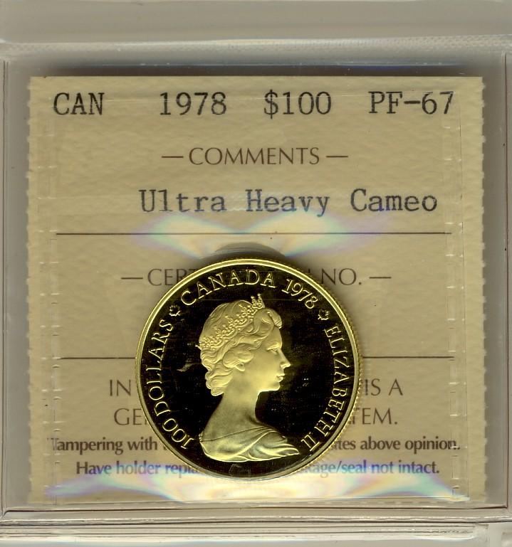 Gold 1978 $100 22kt ICCS PF67 Ultra Heavy Cameo.