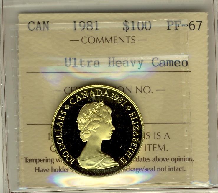 Gold 1981 $100 22kt ICCS PF67 Ultra Heavy Cameo.
