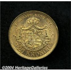 <B>Gold 20 Kronor 1887,</B></I> KM748 BU. <BR><BR><B>Important notice:</B> Heritage usually auctions material at the rate of 200-250 lots per hour. On some occasions eBay Live bid software or the Internet may not be able to keep up with the pace of the auction. We recommend placing a realistic absentee bid now as insurance to avoid disappointment. Occasionally the auctioneer may eliminate or reject an eBay Live bid, and the auctioneer may also reopen a lot after the close of the eBay live bidding (usually because we missed an audience bid), and may reject your bid even if it shows you as the winning bidder. By bidding via eBay Live, you agree that Heritage may award the lot to another bidder at its sole discretion under the circumstances described above or any other reasonable circumstances. Since eBay bids are not shown to us until we open the lot on the floor, we treat those bids just like floor bids. In most cases the floor responds before the eBay bid is presented to us, due to Internet lag time, so for consistency we have made it a policy that floor bids are always considered first over tie eBay live bids. Also please note that all Heritage lots purchased through eBay Live carry a 20% Buyer's Premium. Please make sure you read the Terms and Conditions before you bid.