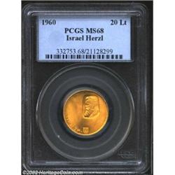 Gold 20 Lirot 1960 Herzl, KM30, MS68 PCGS. A flawless example. Important notice: We expect to be auc