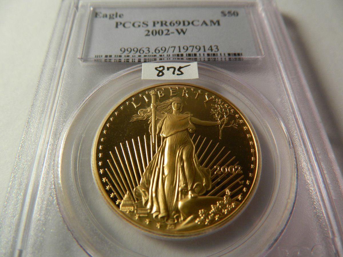 Gold 2002-W $50 U.S. Eagle, PCGS PR69DCAM, One Ounce Fine Gold