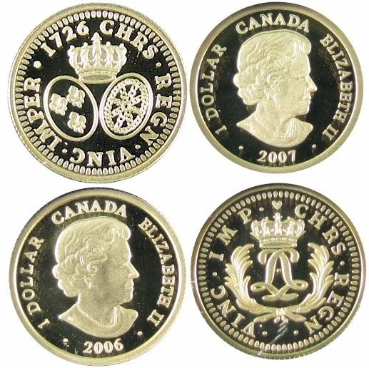 Gold, 2006 & 2007 $1 Louis D'or. 2 coins .