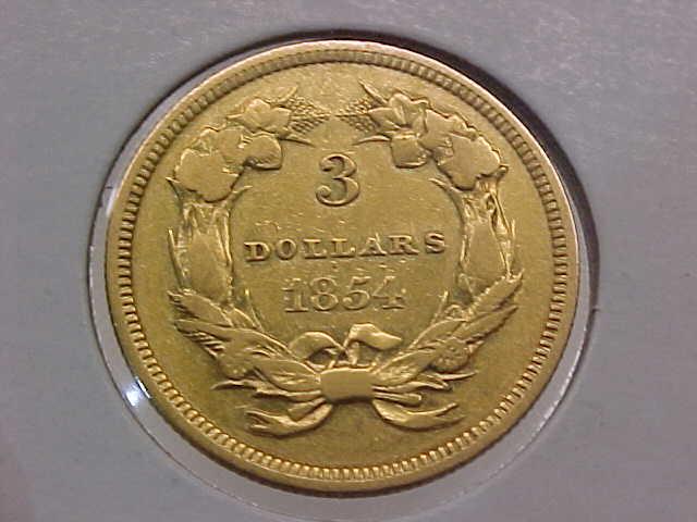 GOLD $3 PRINCESS 1854 VF, only 138,618 minted