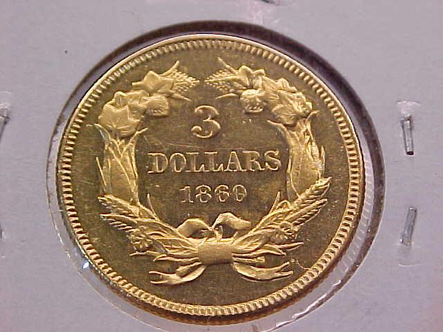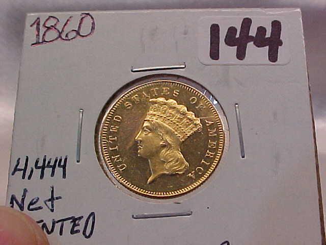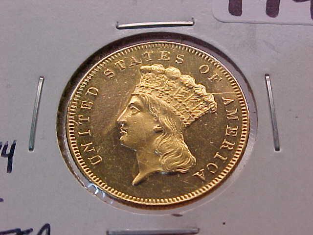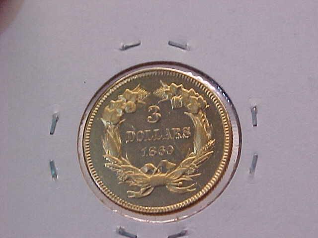 GOLD $3 PRINCESS 1860 Unc-BU PF-like, hairlines, ?obv tooling, net minted 4444