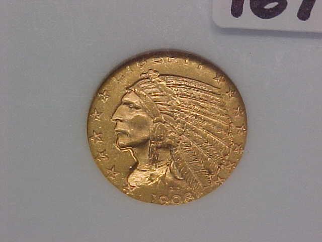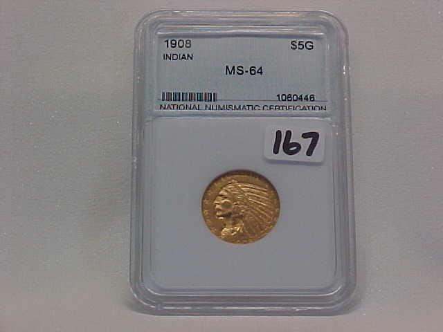 Gold $5 Indian 1908 NNC MS64 (few weak areas)