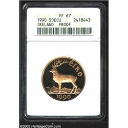 Gold 50 Ecu 1990, KM-M3, PF67 ANACS. An impressive design featuring a stag, and commemorating the EE