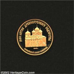 Gold 50 Roubles 1988, Y213, Cathedral of St. Sophia in Novgorod. Choice Proof. Important notice: We expect to be auctioning lots at the rate of 200-250 per hour. Sometimes eBay Premier live bid software cannot keep up with that pace, so we strongly recommend that you place a realistic proxy bid now as insurance to avoid disappointment. Also please note that all Heritage/CAA lots purchased through eBay Premier carry a 20% Buyer's Premium. Please make sure you read the Terms and Conditions.