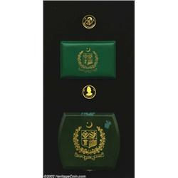 Gold 500 Rupees 1976, KM43, Proof in the original green presentation case, struck for the 100th anniversary of the birth of Mohammed Ali Jinnah, plus 500 Rupees 1977 KM49, Proof in the green presentation wallet, struck for the 100th anniversary of the birth of Allama Mohammed Iqbal. 2 coins Important notice: We expect to be auctioning lots at the rate of 200-250 per hour. Sometimes eBay Premier live bid software cannot keep up with that pace, so we strongly recommend that you place a realistic proxy bid now as insurance to avoid disappointment. Also please note that all Heritage/CAA lots purchased through eBay Premier carry a 20% Buyer's Premium. Please make sure you read the Terms and Conditions.