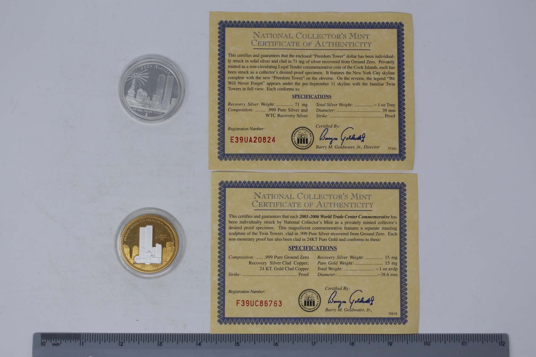 Gold 5th Anniversary WTC Commemorative Coin & Silver Freedom Tower Coin (Lot 1)