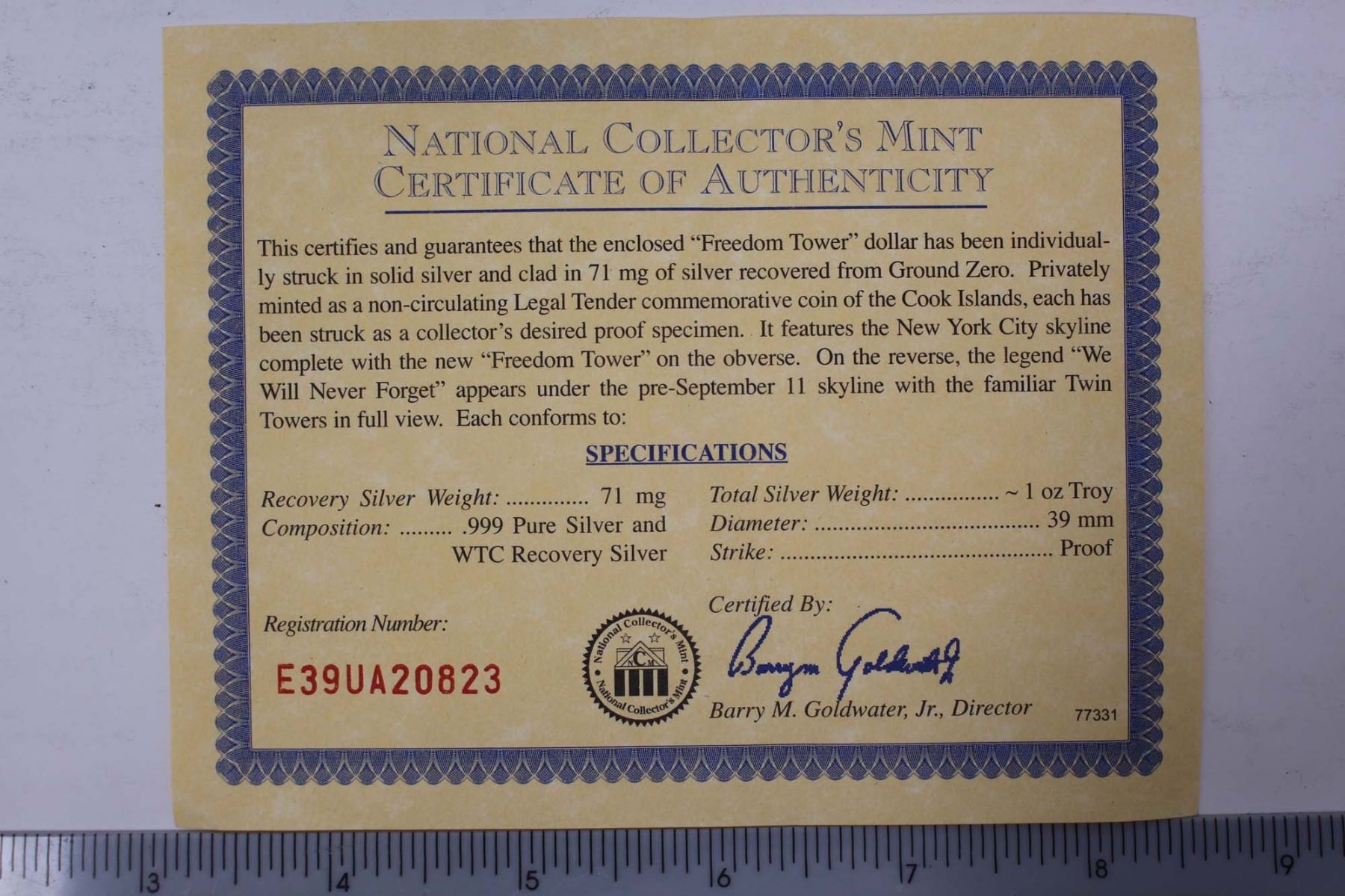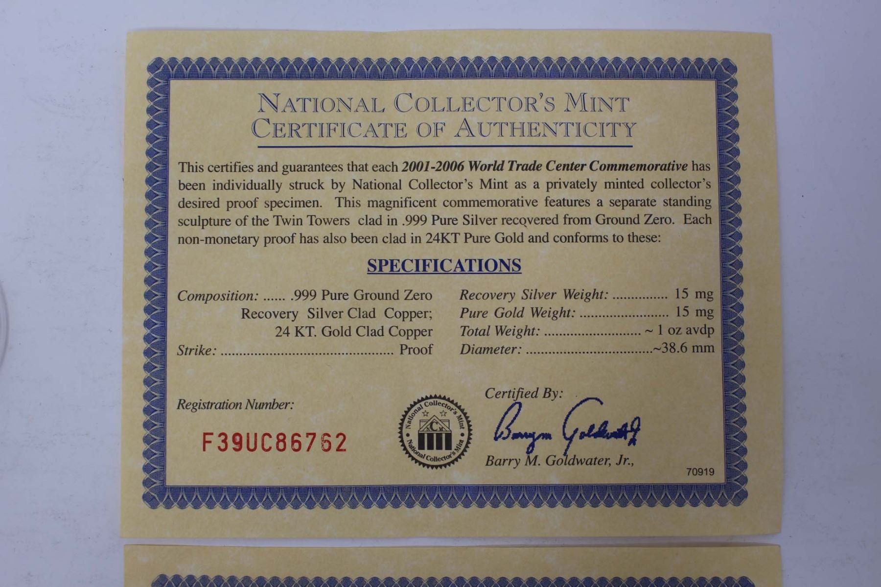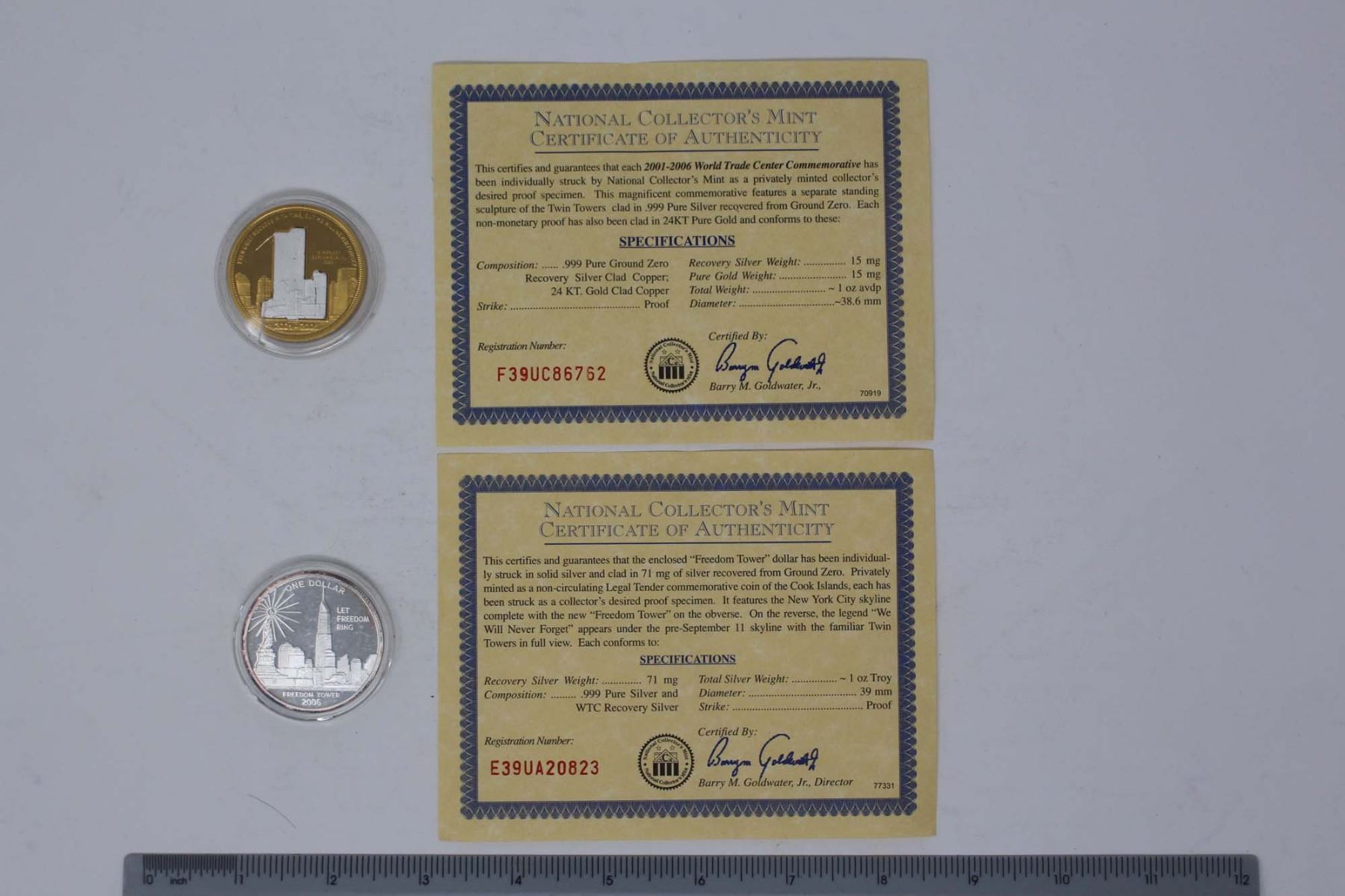 Gold 5th Anniversary WTC Commemorative Coin & Silver Freedom Tower Coin (Lot 2)