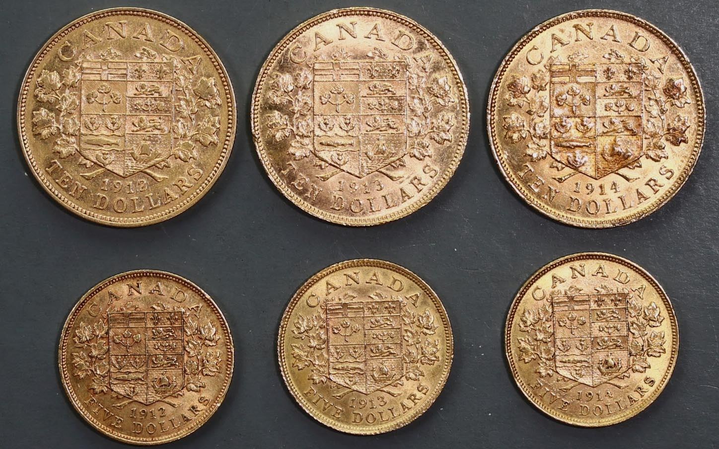 Gold 6-Coin Set. 1912-1914 $5 & $10 Original lustrous set! All coins are nice and attractive. Grades vary VF-UNC.