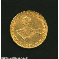 <TABLE cellSpacing=0 cellPadding=0 width="100%" bgColor=#000000 border=0><TBODY> <TR><TD width="100%"><TABLE cellSpacing=1 cellPadding=3 width="100%" border=0><TBODY><TR><TD width="100%" bgColor=#79735c><FONT face=arial color=#ffffff size=3><B>Description</B> </FONT></TD></TR><TR><TD width="100%" bgColor=#ffffff><FONT face=arial size=2><B>Gold 8 Escudos 1862-Go YE,</B></I> KM383.7, Nearly XF, considerable luster remains. </FONT></TD></TR></TBODY></TABLE></TD></TR></TBODY></TABLE><BR><A name=PricesRealized></A><TABLE cellSpacing=0 cellPadding=0 width="100%" bgColor=#000000 border=0><TBODY><TR><TD width="100%"><TABLE cellSpacing=1 cellPadding=3 width="100%" border=0><TBODY><TR><TD width="100%" bgColor=#79735c><A name=PR><FONT face=arial color=#ffffff size=3><B>Previous Prices from Heritage Auctions</B> </FONT></A></TD></TR><TR><TD bgColor=#f6f6ed>No Prior Data Recorded </TD></TR><TR><TD bgColor=#ffffff><FONT face=arial size=1 ?>PLEASE NOTE: All prices realized reflect the final hammer price PLUS the buyer's premium in auctions that charge a buyer's premium. Each item has a notation at the top of the listing indicating whether that lot included a buyer's premium. Example: A item that sells with a final hammer price of $100 and a 20% buyer's premium will display with a price realized of $120. All information listed is intended to be as accurate as possible, but errors are possible. Please use this guide carefully and inform us of any inaccuracies. </FONT></TD></TR></TBODY></TABLE></TD></TR></TBODY></TABLE><BR><TABLE cellSpacing=0 cellPadding=0 width="100%" bgColor=#000000 border=0><TBODY><TR><TD width="100%"><TABLE cellSpacing=1 cellPadding=3 width="100%" border=0><TBODY><TR><TD width="100%" bgColor=#79735c colSpan=6><FONT face=arial color=#ffffff size=3><B>Price Guide*</B> </FONT></TD></TR><TR bgColor=#f6f6ed><TD align=middle><B>Grade</B> </TD><TD align=middle><B>Coin World<BR>(Trends)</B> </TD><TD align=middle><B>Numismedia<BR>Retail</B> </TD><TD align=middle><B>Numismedia<BR>Wholesale</B> </TD><TD align=middle><B>Coin<BR>Universe</B> </TD><TD align=middle><B>Heritage<BR>Value Index</B> </TD></TR><TR bgColor=#ffffff><TD colSpan=6><FONT size=1>*All information listed is intended to be as accurate as possible, but errors are possible. No item may be returned or refused based on this information which is provided as a service to our customers. You should contact each pricing source directly to determine the accuracy of this information. </FONT></TD></TR></TBODY></TABLE></TD></TR></TBODY></TABLE><BR><TABLE cellSpacing=0 cellPadding=0 width="100%" bgColor=#000000 border=0><TBODY><TR><TD width="100%"><TABLE cellSpacing=1 cellPadding=3 width="100%" border=0><TBODY><TR><TD width="100%" bgColor=#79735c><FONT face=arial color=#ffffff size=3><B>Population Guide</B> </FONT></TD></TR><TR bgColor=#ffffff> Important notice: Heritage usually auctions material at the rate of 200-250 lots per hour. On some occasions eBay Live bid software or the Internet may not be able to keep up with the pace of the auction. We recommend placing a realistic absentee bid now as insurance to avoid disappointment. Occasionally the auctioneer may eliminate or reject an eBay Live bid, and the auctioneer may also reopen a lot after the close of the eBay live bidding (usually because we missed an audience bid), and may reject your bid even if it shows you as the winning bidder. By bidding via eBay Live, you agree that Heritage may award the lot to another bidder at its sole discretion under the circumstances described above or any other reasonable circumstances. Also please note that all Heritage lots purchased through eBay Live carry a 20% Buyer's Premium. Please make sure you read the Terms and Conditions before you bid.</TD></TR></TBODY></TABLE></TD></TR></TBODY></TABLE>