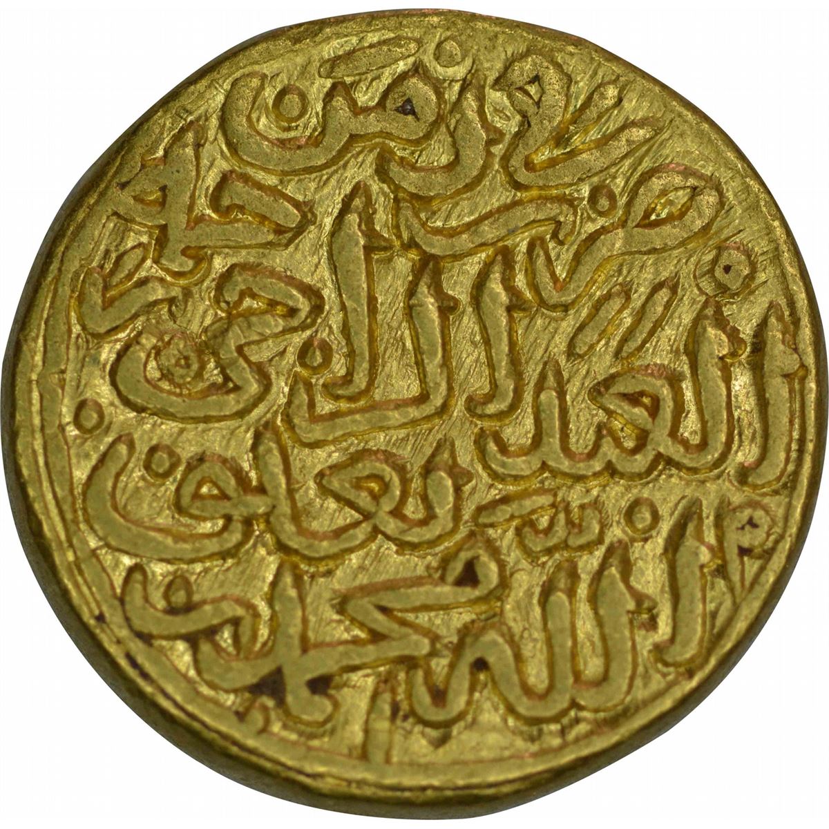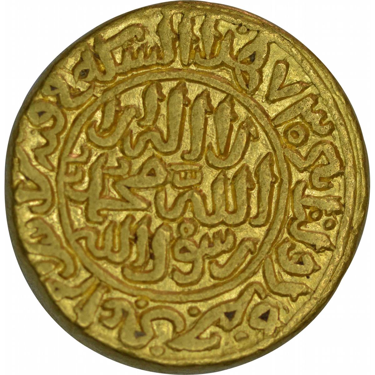 Delhi Sultanate, Muhammad-Bin-Tughluq,Hadrat Daulatabad, Gold Adli, AH 730, Obv:kalima shahada,Rev:duriba fizaman al abd-ul-raji rahmathulla muhammad bin tughluq, 9.25g, 16.93mm,(GG# D351),about extremely fine, Rare.