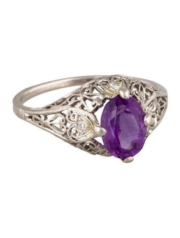 Art Deco White Gold Diamond And Amethyst Filigree Ring