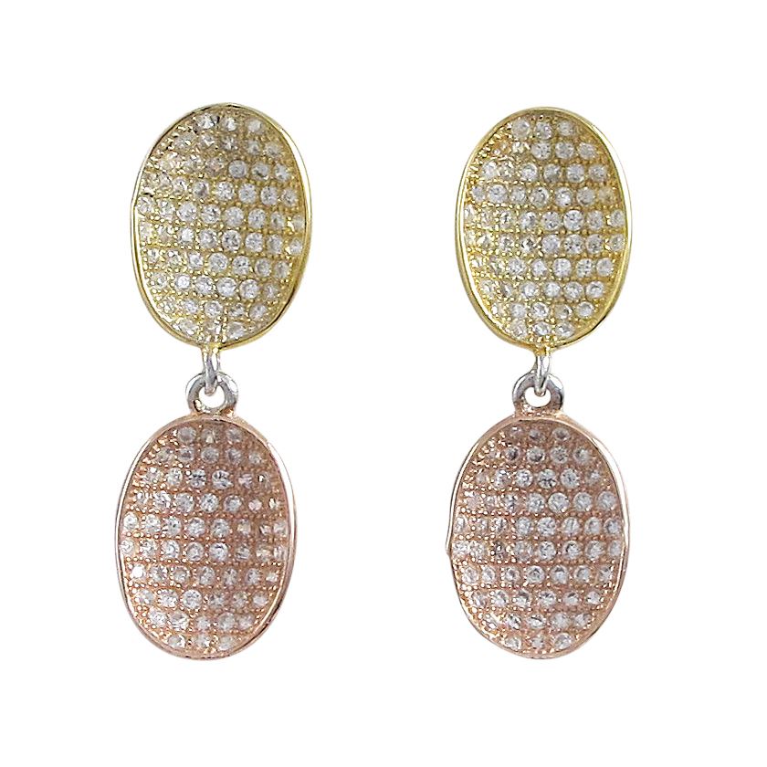 Gold And Rose Plated Sterling Silver CZ Ovals Post Earrings-1.02"