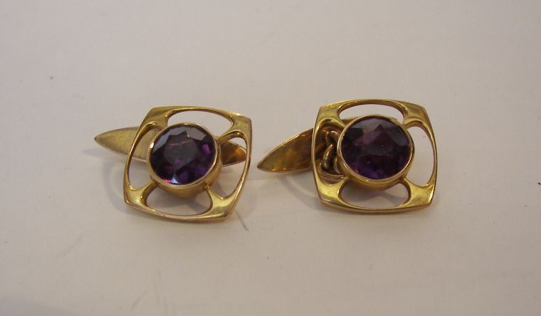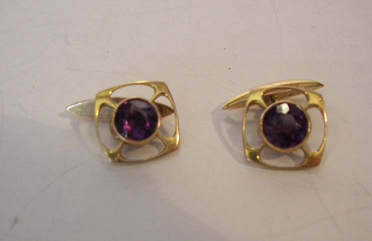 (7700) Gold And Garnet Men's Cufflinks, 14 Karat Gold