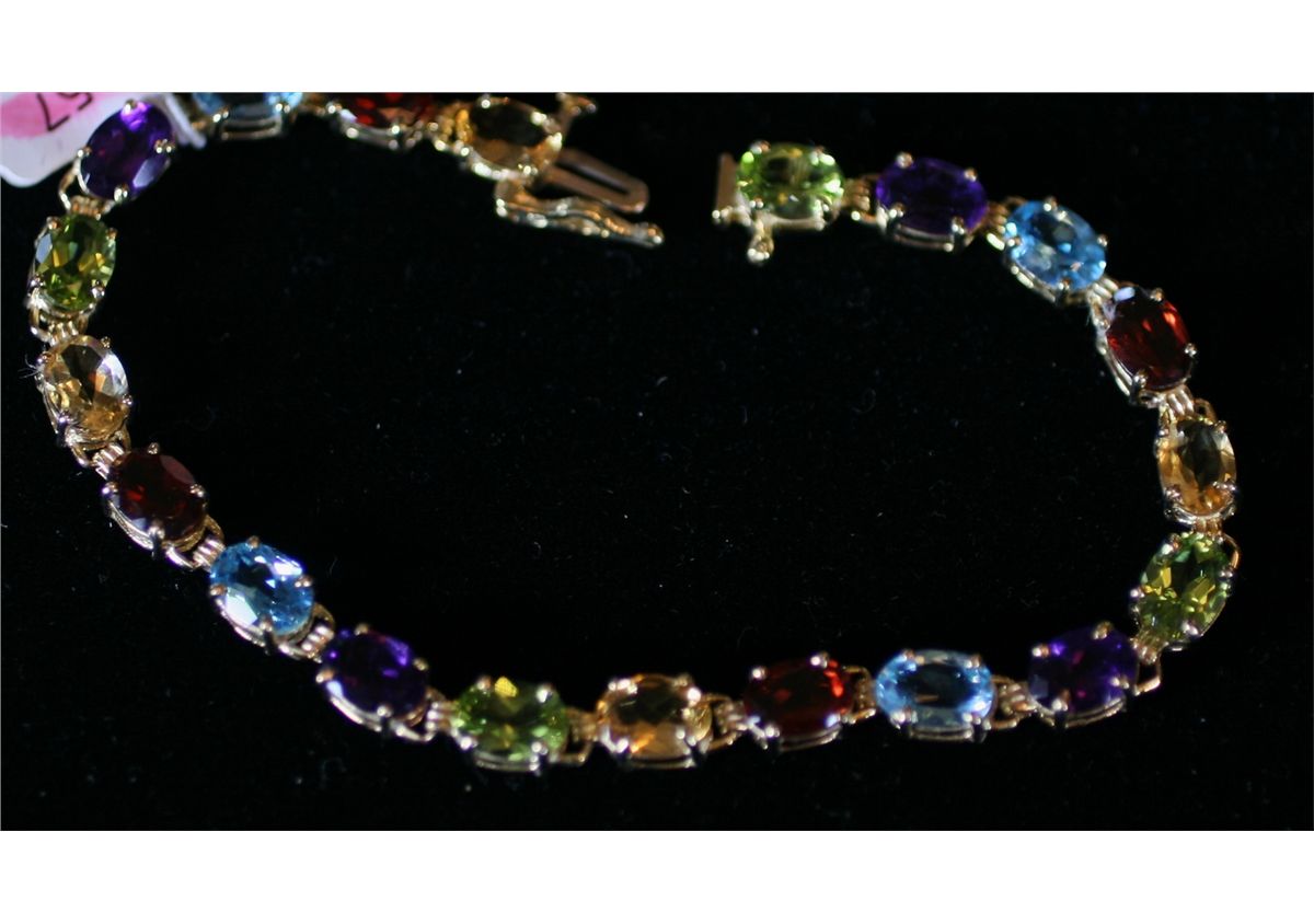 10k gold tennis bracelet multiple semi precious stones, 530357