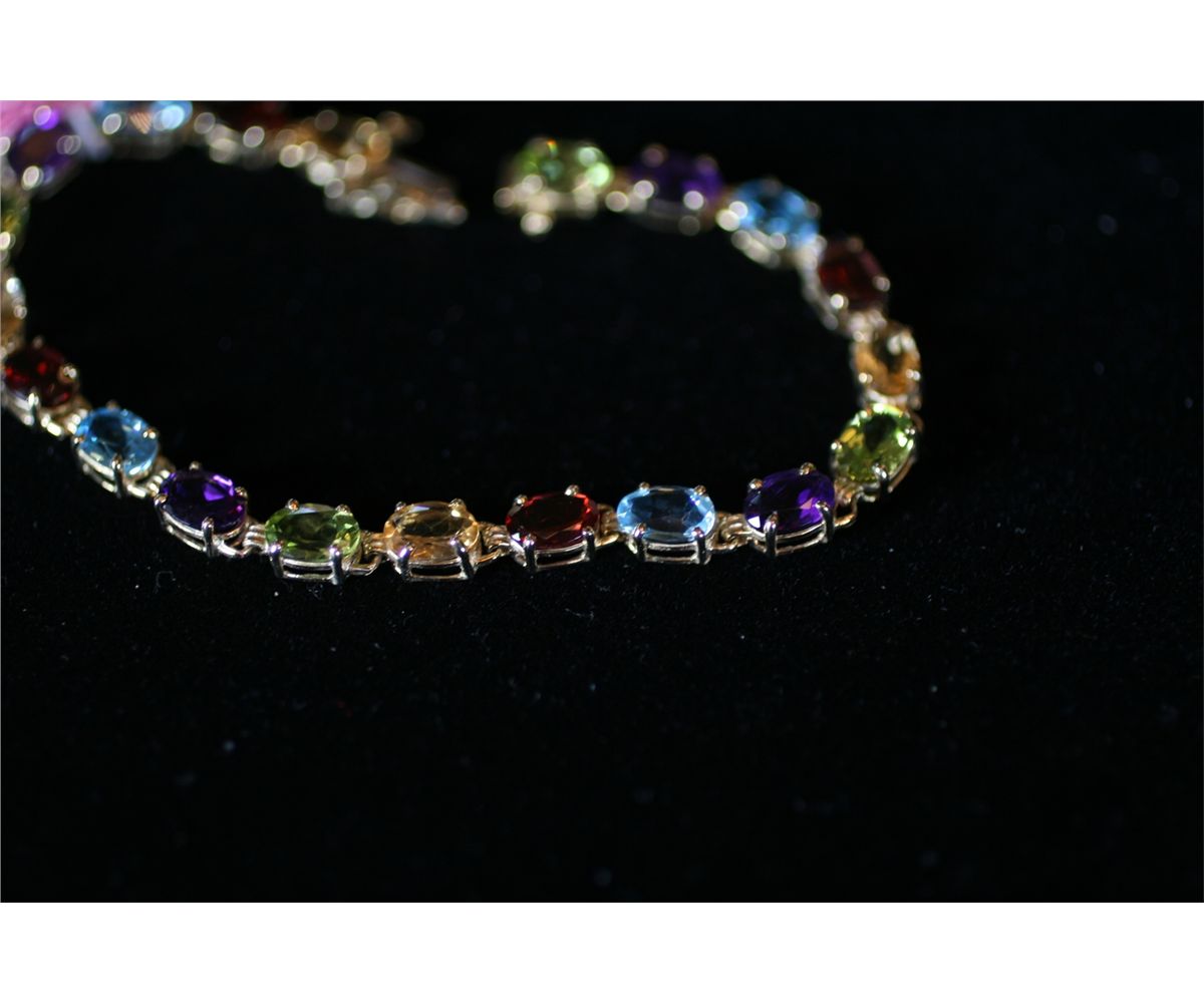 10k gold tennis bracelet with multiple semi precious stones, 530359