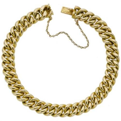 <B>Gold Bracelet</B></I> The 18k yellow gold bracelet features fancy links having a high polish finish, completed by a tongue-in-groove clasp with safety chain. French hallmarks. Gross weight 12.00 grams.<BR><I>Dimensions: 8 inches x 5/16 inch</B></I><BR><BR><b>Shipping:</b> Miscellaneous Collectibles, Smal (<a target="_blank" href="http://www.heritageauctions.com/common/shipping.php">view shipping information</a>)