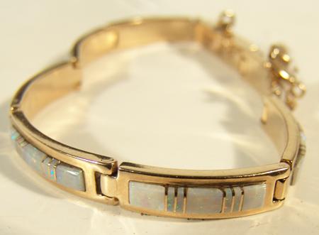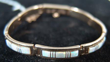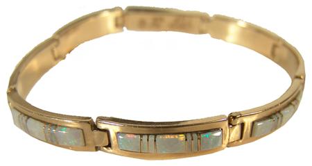 Stunning 14k gold bracelet set with square cut opal stones. Hallmarked "TSF Calvin". 6-1/2"