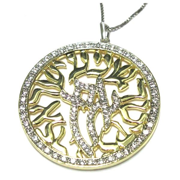Gold CZ 50Mm Brass 50Mm Large Shema Pendant