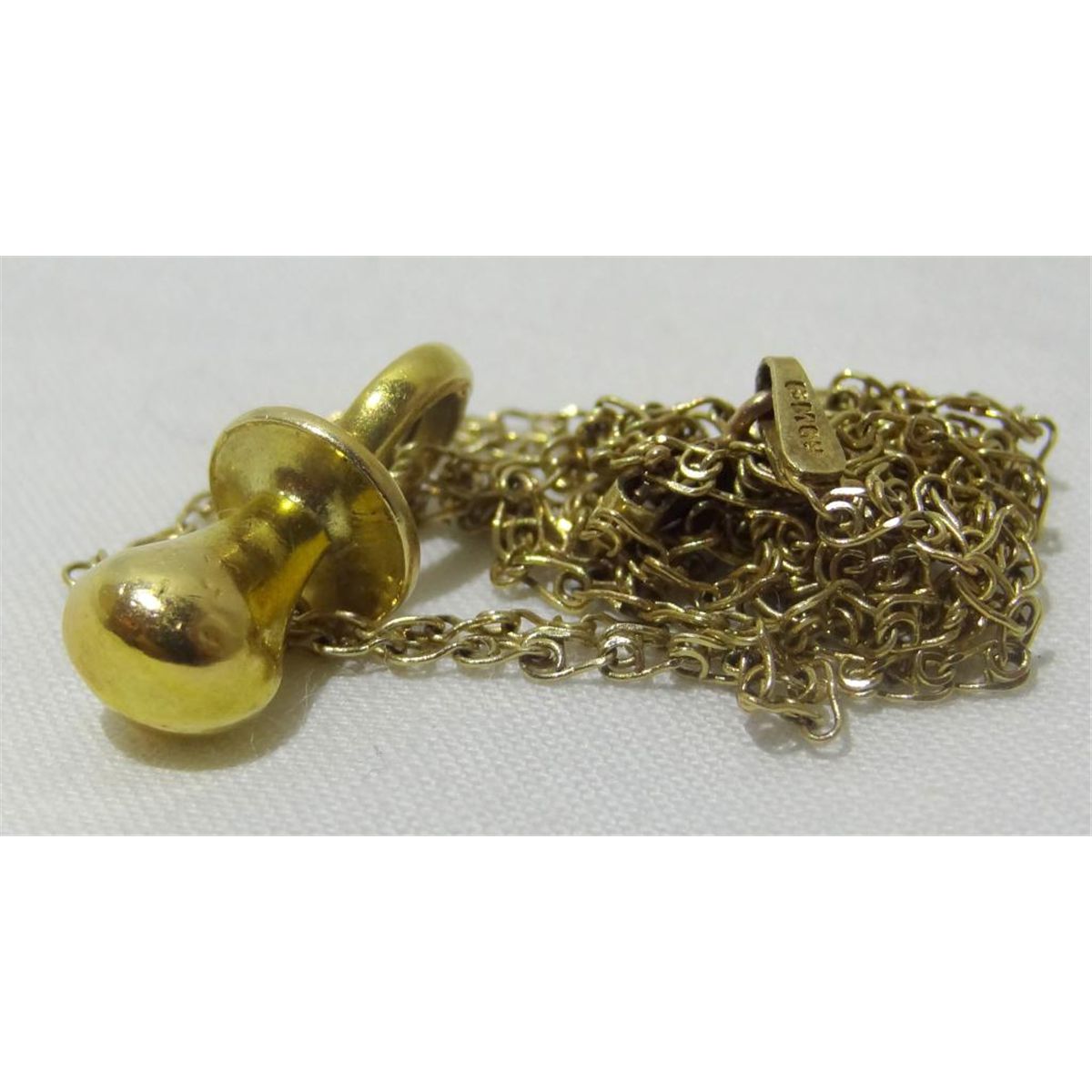 14KT. Gold Pacifier Pendant TW 1.4 Grams Necklace is 10KT Gold TW 2.1 Grams. Lot Total Weight 3.5 Grams 100% Guaranteed!