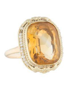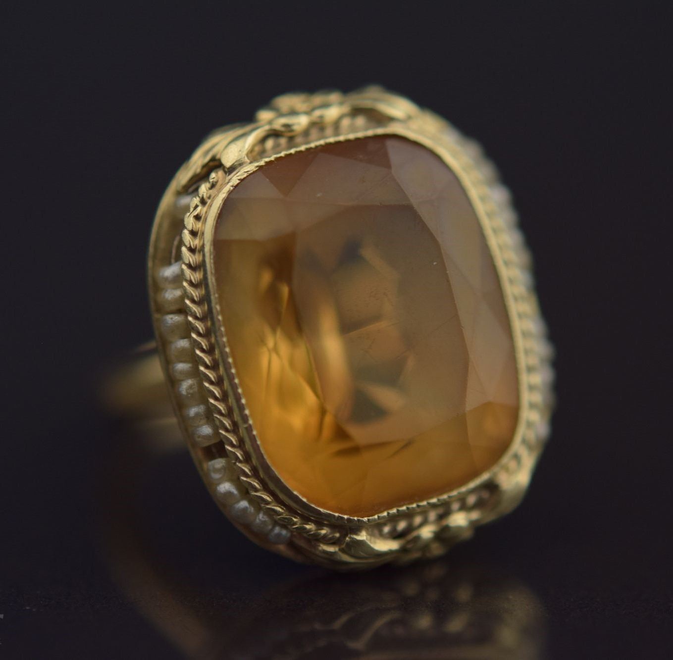 Style; Victorian Yellow Gold Citrine And Pearl Ring