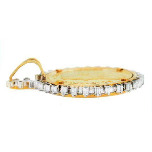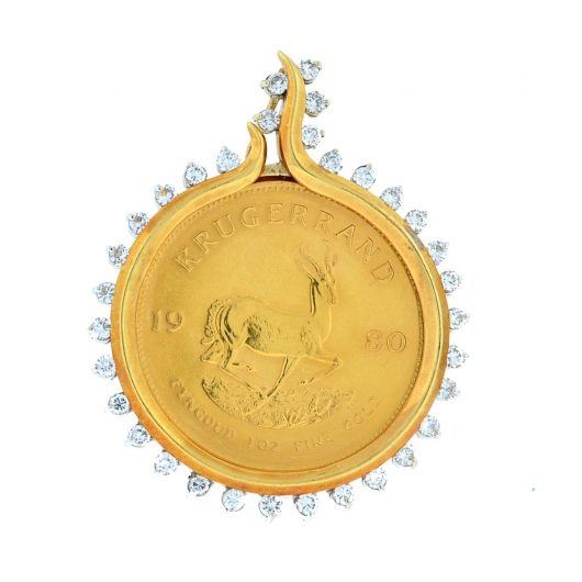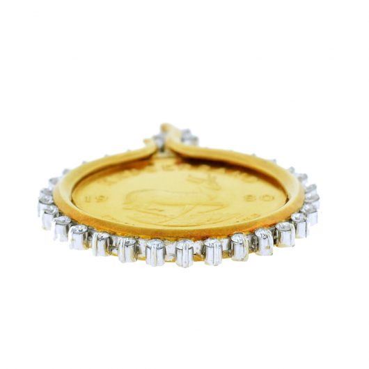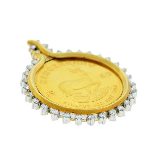 1 oz. Krugerrand 18k Gold Coin Pendant with Diamond Bezel