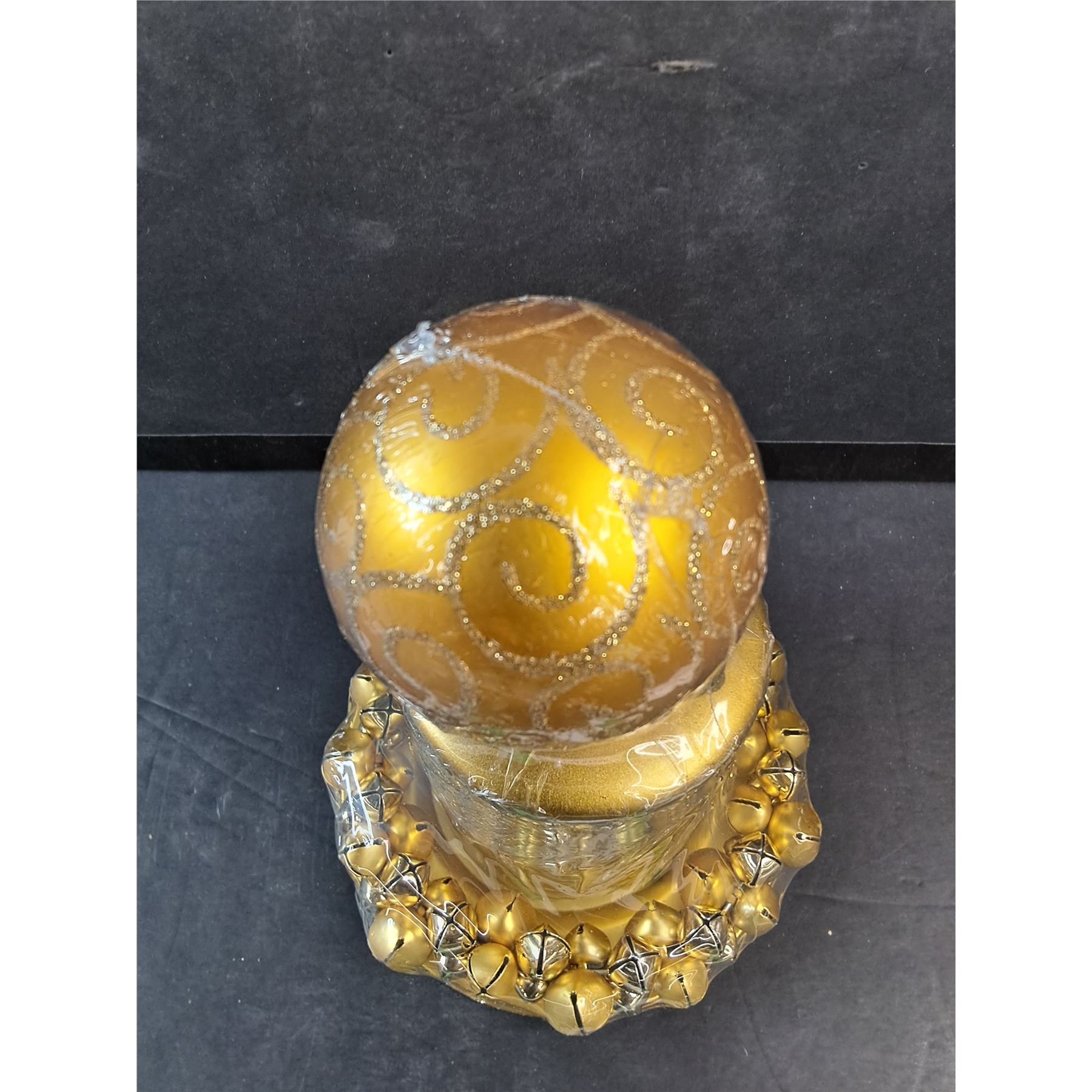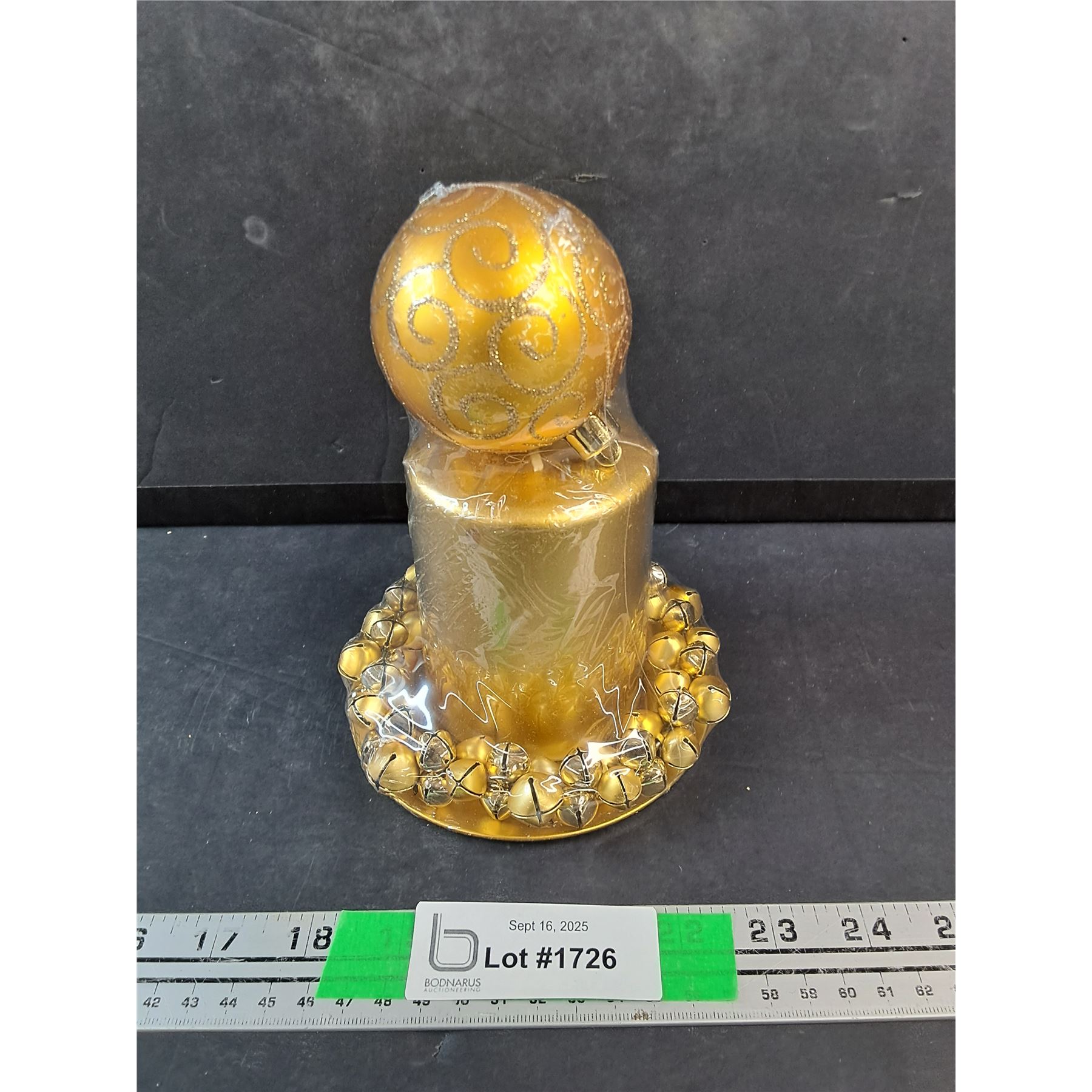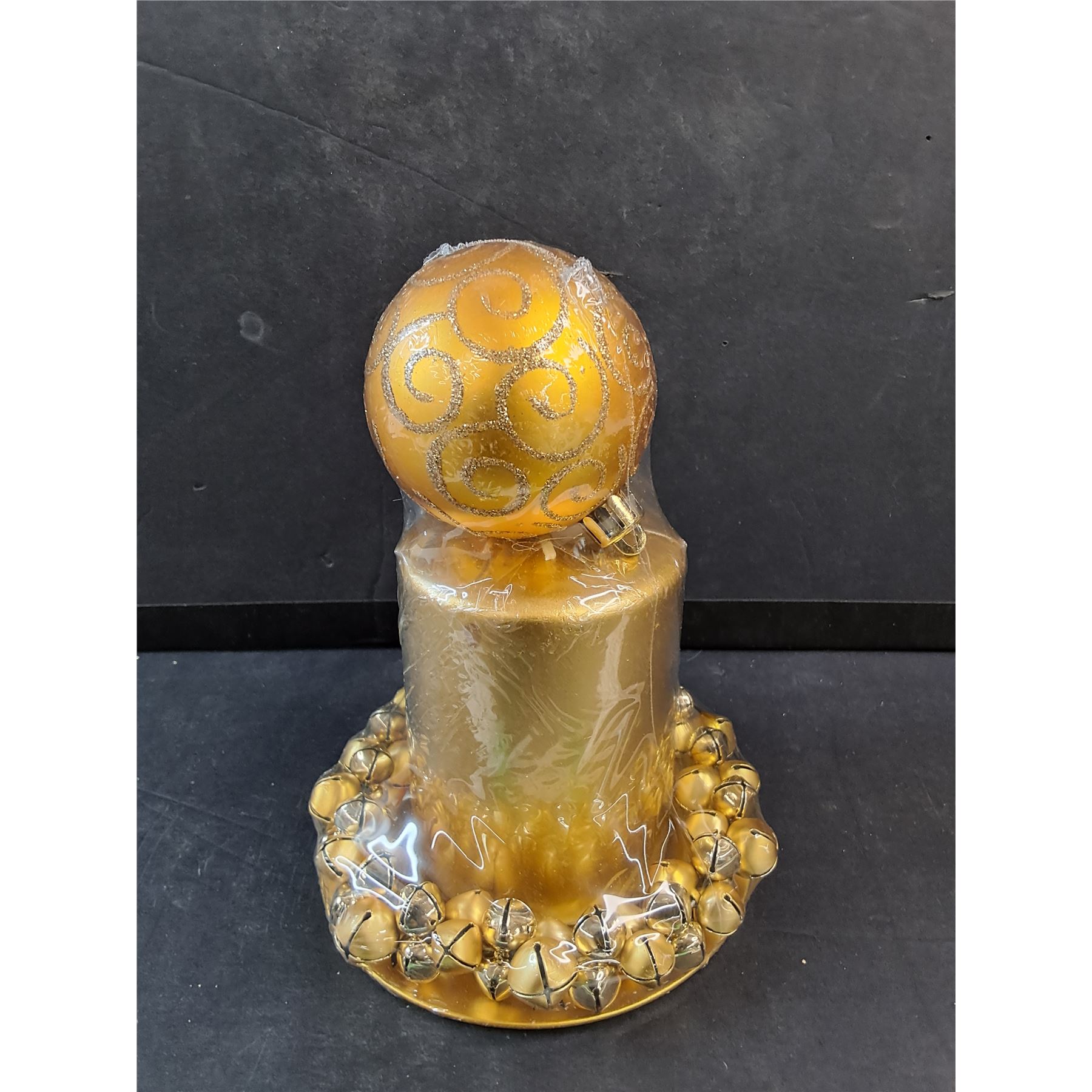 Gold Color Christmas Candle with Bells and Christmas Tree Ornament - Sealed