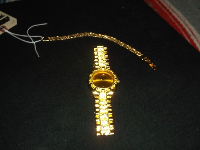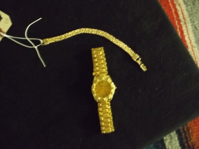 The bracelet is approx. 7" long, the watch is a Quartz and approx. 8" long