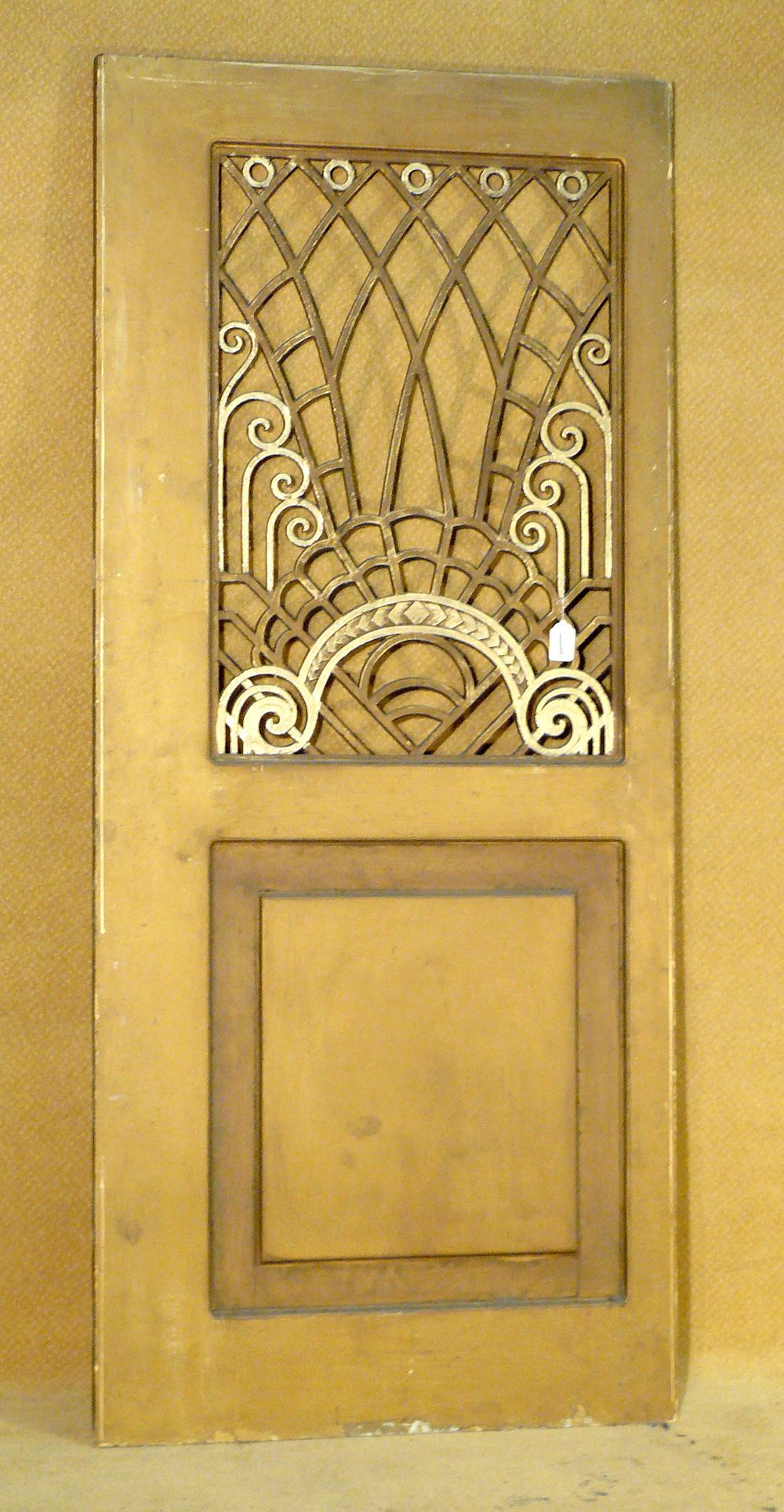 Large wooden and iron door with ornate art deco designs 96" X 42" X 2 1/2"