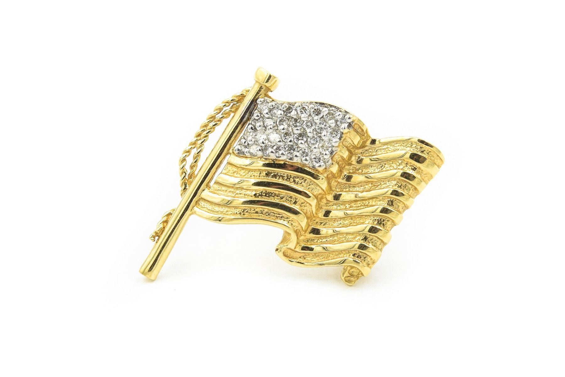 Model: Contemporary Yellow Gold And Diamond American Flag Brooch/Pin