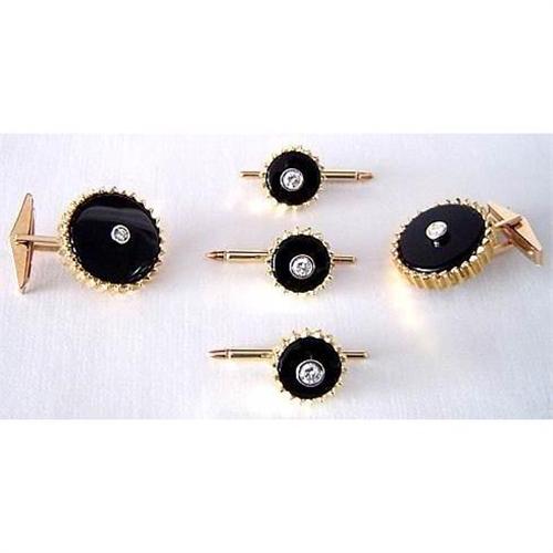 <tr><td>Title:Gold Diamond & Onyx Cufflinks & Studs Set</td></tr>