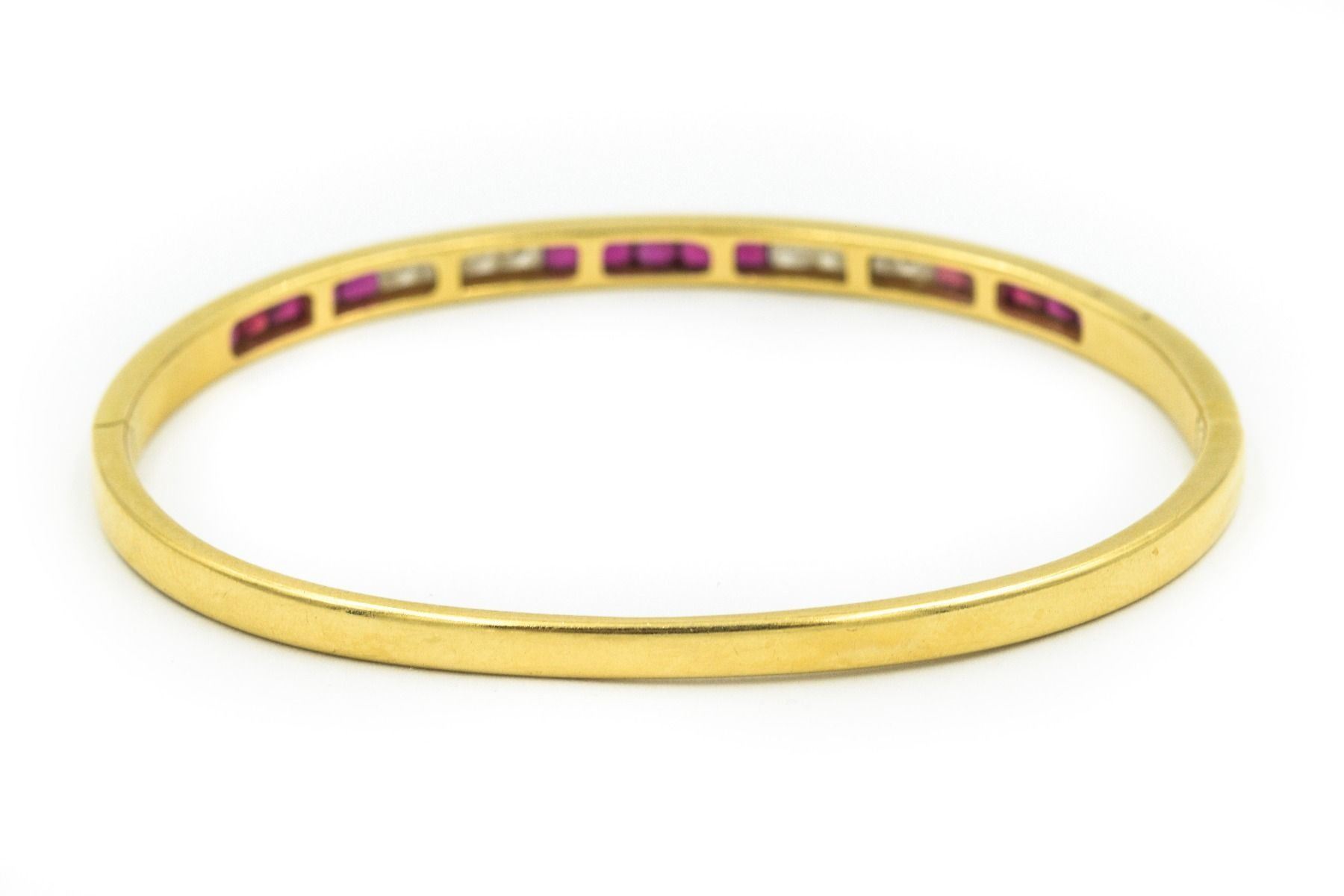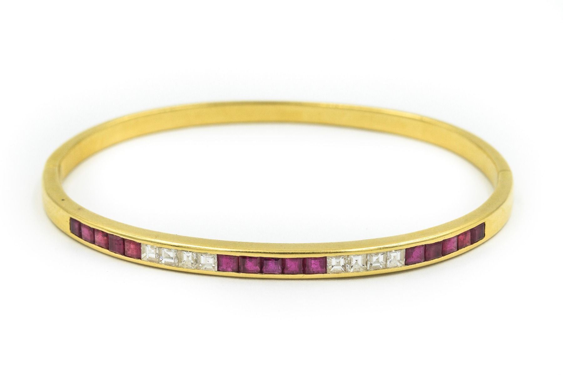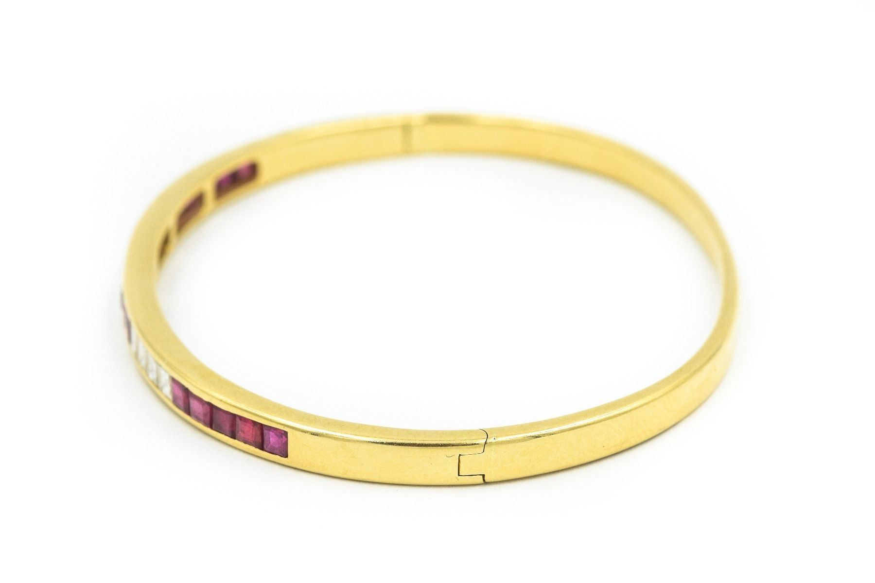 Model: Estate Yellow Gold Diamond And Ruby Bangle Bracelet