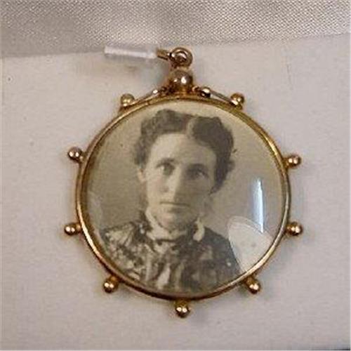 English photo locket, double sided. Two spring clips at the top allow access to the photos, so you can place your own favourites inside. Glass both sides, and currently containing photos of a lady with rather a startled expression. She wears Victorian dress. On the other side is a photo of an Edwardian gentleman. Locket is made in 9ct gold, and bears the anchor stamp of Birmingham. No date letter, but would be around the 1901-1910 period. Locket measures 3.5 cm diameter (1.3/8 inches). Very good condition, has a few scratches to one side of the glass. scratch