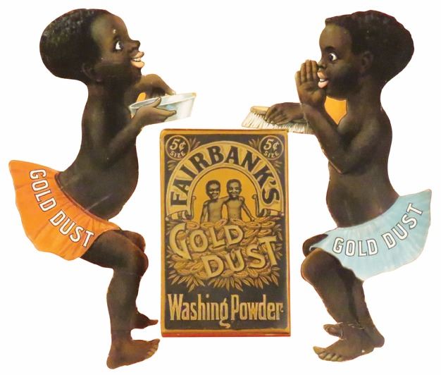 Gold Dust Twins Die Cut Cardboard Store Display. Wrinkles and repair on left twin's foot otherwise good condition, framed under glass. 13 X 11 inches image only.