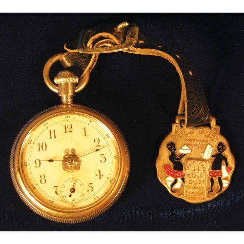 Gold Dust Twins Washing Powder Watch, New Haven Watch Co. and Watch Fob. Very good condition, watch may not be operational.