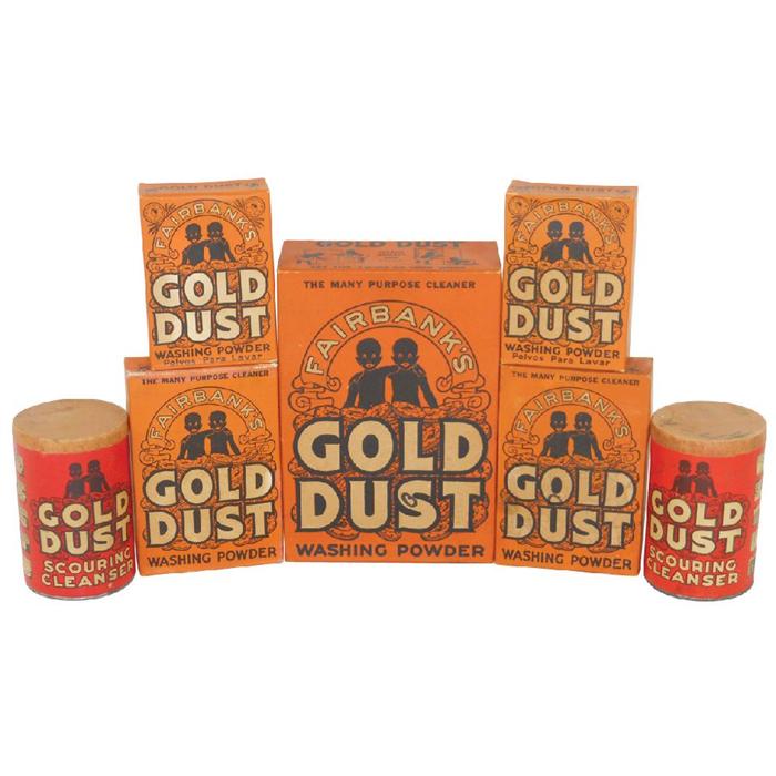 Gold Dust Washing Powder & Gold Dust Scouring Cleanser (7 pcs), all w/Black graphics, all new old st