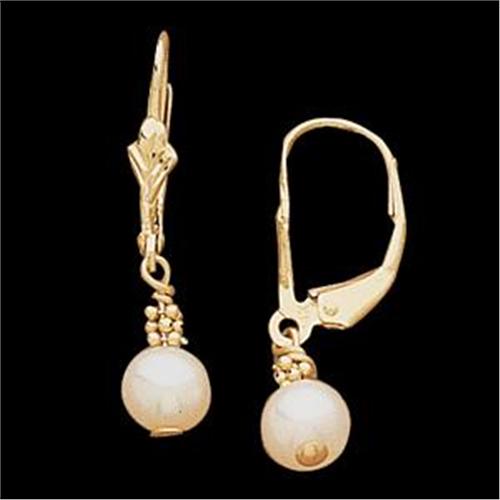 This beautiful pair of 14k Yellow Gold lever back Earrings feature a 5.5MM Cultured Pearl with a slight dangle.