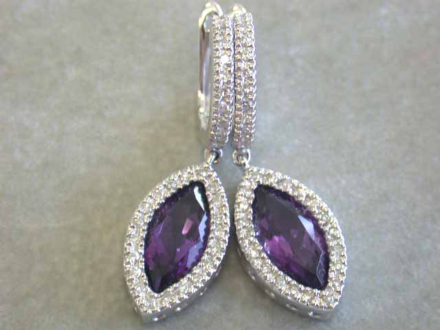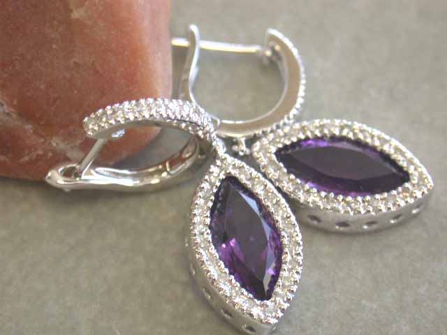 14k Gold Earrings w/ Diamonds - 0.32 carat, G color and VS clarity and Amethyst - 3.09 carats. Length - approximately 1 inch long and Weight - 5.4 grams