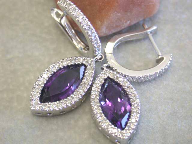 14k Gold Earrings w/ Diamonds - 0.32 carat, G color and VS clarity and Amethyst - 3.09 carats. Length - approximately 1 inch long and Weight - 5.4 grams