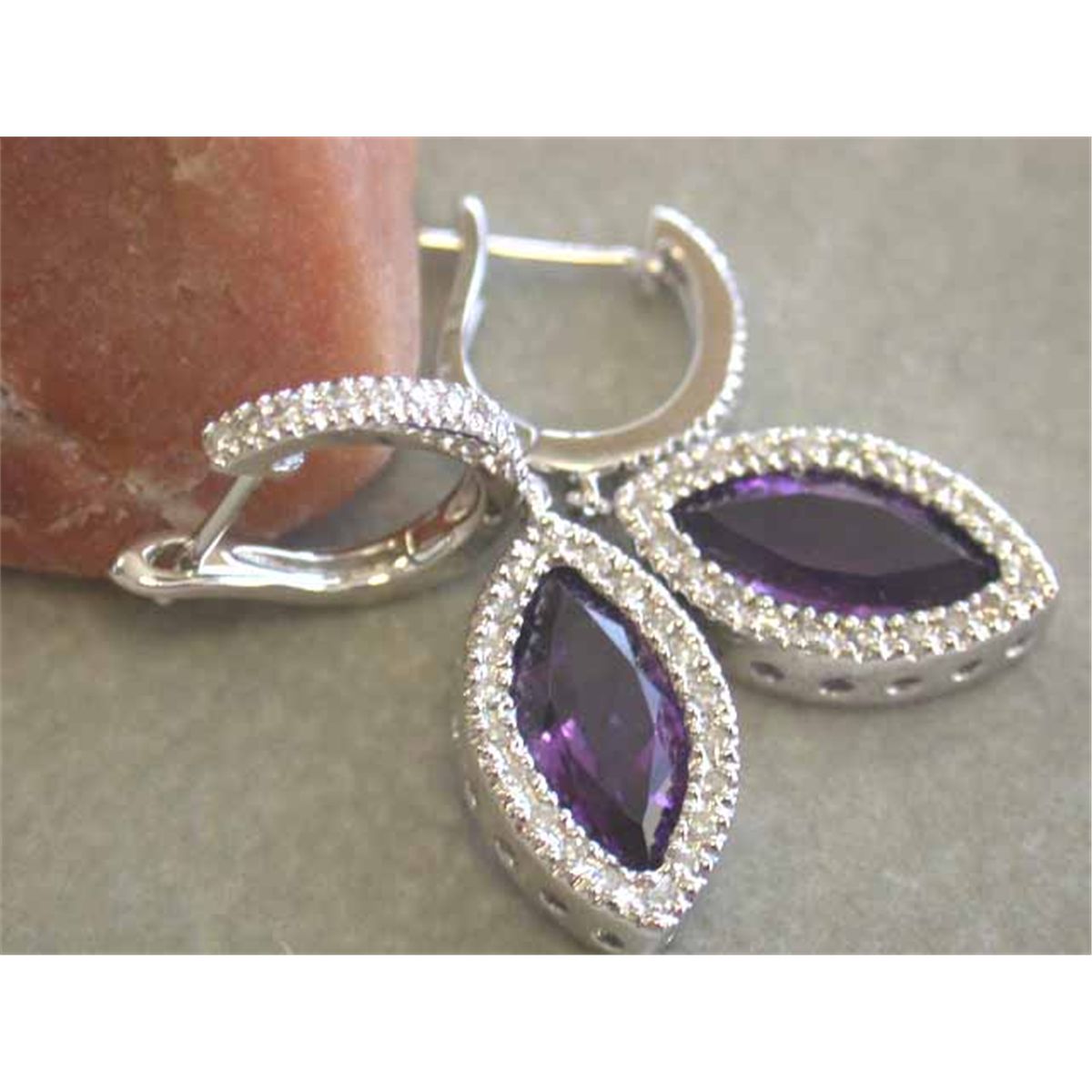 14k Gold Earrings w/ Diamonds - 0.32 carat, G color and VS clarity and Amethyst - 3.09 carats. Length - approximately 1 inch long and Weight - 5.4 grams