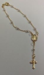 Gold Electroplated 7 1/2" Rosary Bracelet with Pearls in a Red Pouch