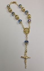 Gold Electroplated 7 1/2" Rosary Bracelet with Turqoise Crystal in a Red Pouch