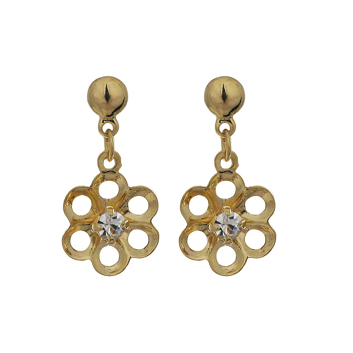 Gold Filled Dangling Cutout Flower With CZ Post Earrings, 0.83"