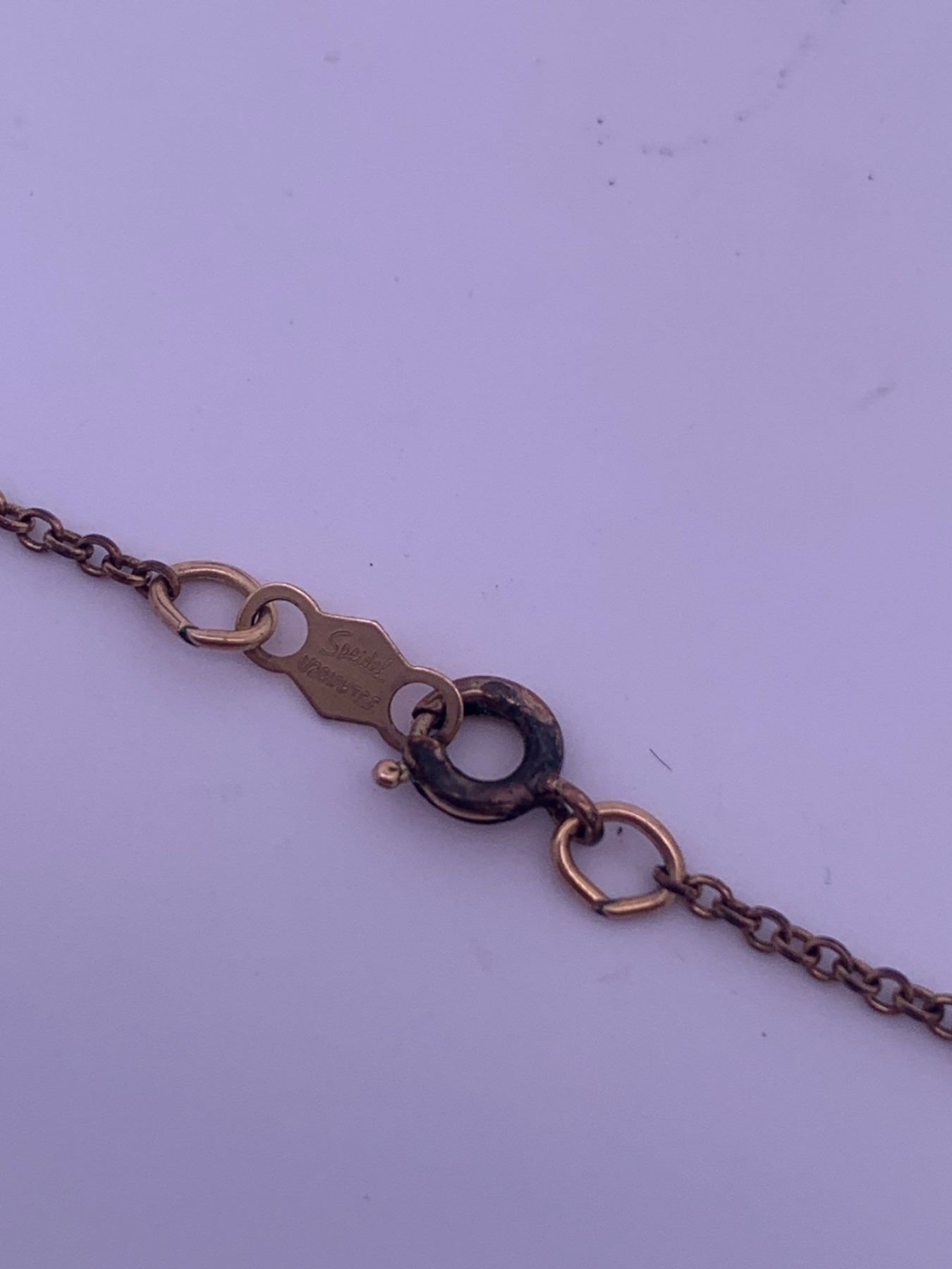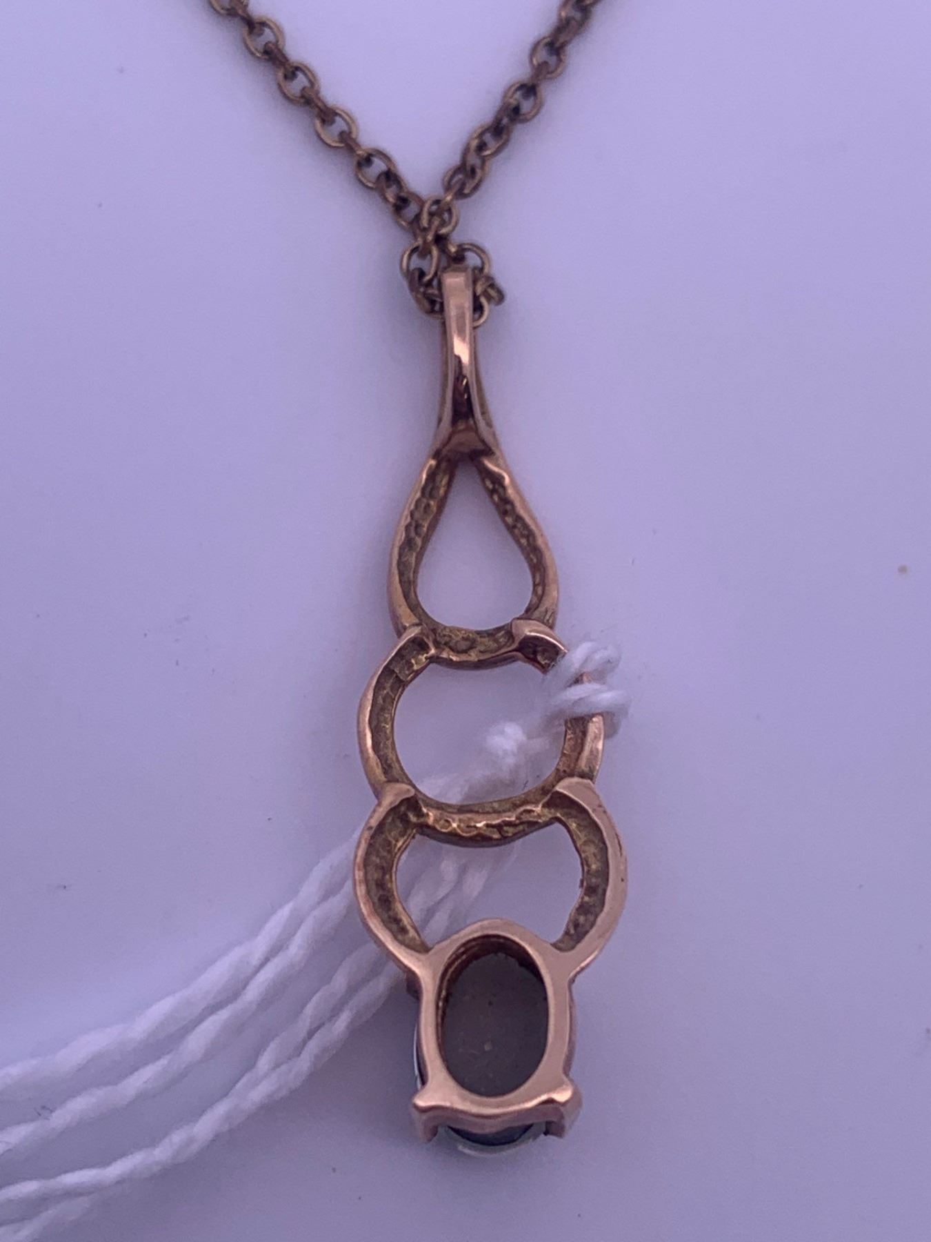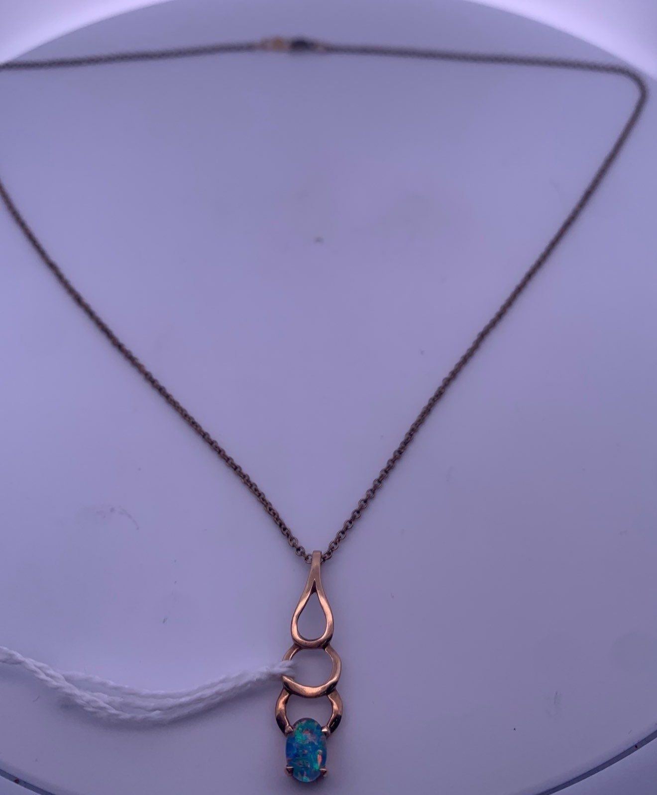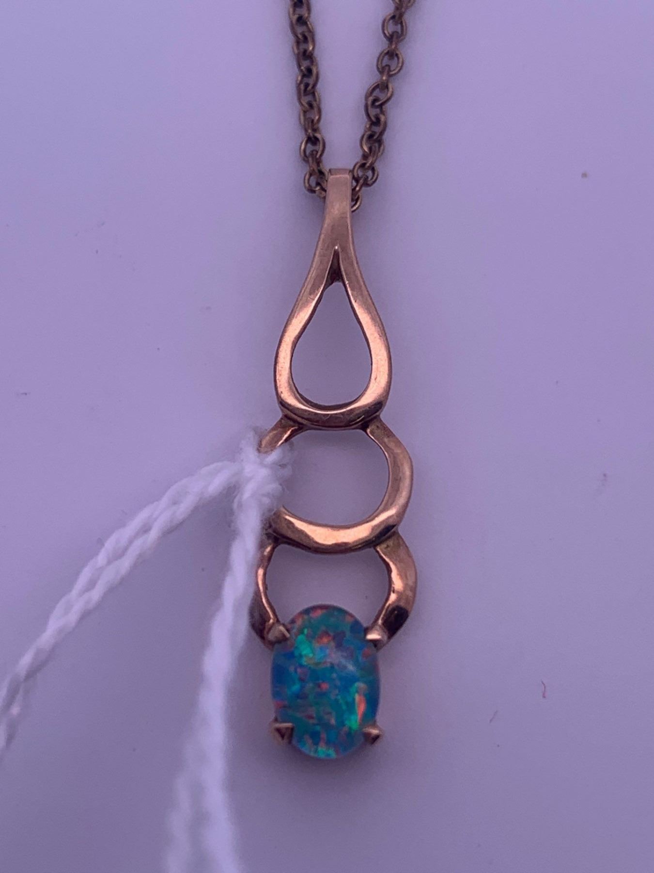 Gold filled chain, with a gold colored pendant with blue opal; weighs 2.49 grams.